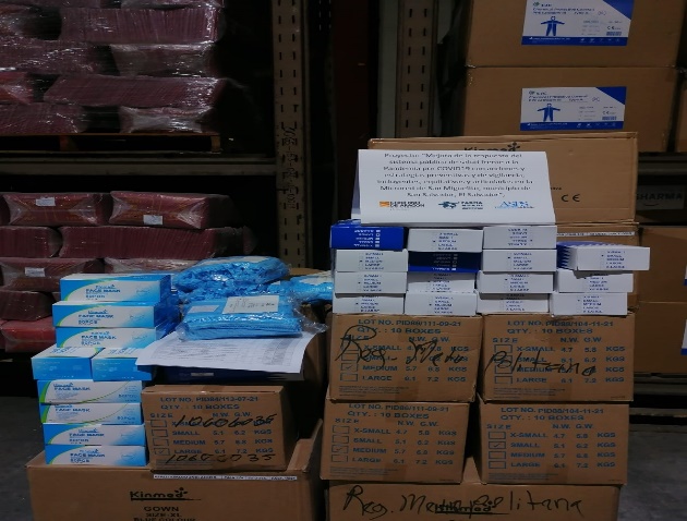 La Asociación Salvadoreña Promotora de la Salud (ASPS) y Farmamundi han hecho entrega de insumos de laboratorios para la detección de la COVID-19 este 28 de agosto. El acto tuvo lugar en la Bodega Central “El Paraíso” del Ministerio de Salud (MINSAL) y contó con la participación del Dr. Marbel Magaña, director nacional del Primer Nivel de Atención del MINSAL, Tatiana Monterrosa, jefa de Laboratorio de la Región Metropolitana, Ana Cecilia Arévalo, directora de ASPS y Lidia Jiménez, delegada de Farmamundi en El Salvador, que ha explicado que “la donación se ha realizado con el fin de fortalecer el rol y capacidad de resolución del Ministerio de Salud en gestión de epidemias y robustecer al laboratorio Central de MINSAL para monitoreo del COVID”.