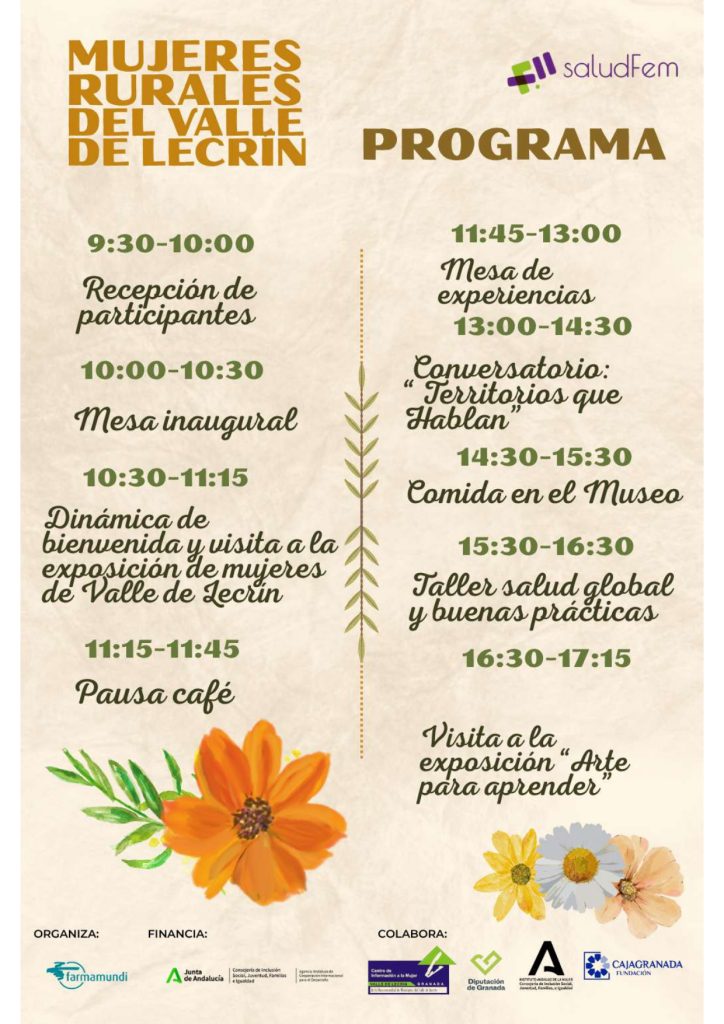 El próximo viernes, 30 de mayo, el Museo Memoria de Andalucía de Granada será escenario de las jornadas Saludfem 2.0: “Sembrando transformaciones: mujeres rurales del Valle de Lecrín protagonistas del cambio local y global”. Un encuentro que, de 9:30 a 16:45 h, reunirá a mujeres del territorio, profesionales de la salud, la cooperación y el feminismo. Esta cita se plantea como un espacio vivo de intercambio de experiencias, aprendizajes y propuestas, con el objetivo de impulsar colectivamente nuevas formas de construir salud desde lo local, con enfoque comunitario y feminista.