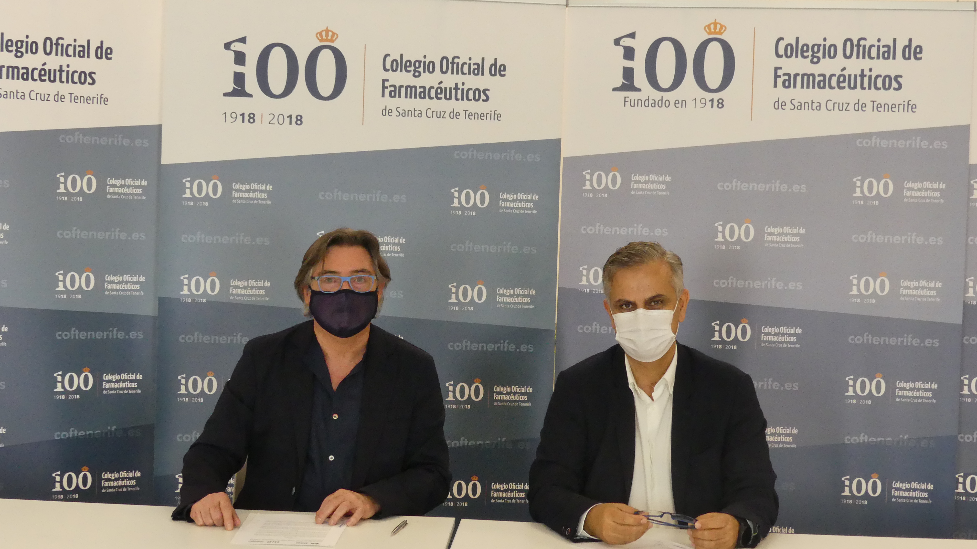 El Presidente del Colegio Oficial de Farmacéuticos de Tenerife, Manuel Ángel Galván González y el Presidente de Farmamundi, Ricard Troiano i Gomà, firman este convenio y se suman así a los 17 colegios de farmacéuticos ya presentes en este fondo solidario.