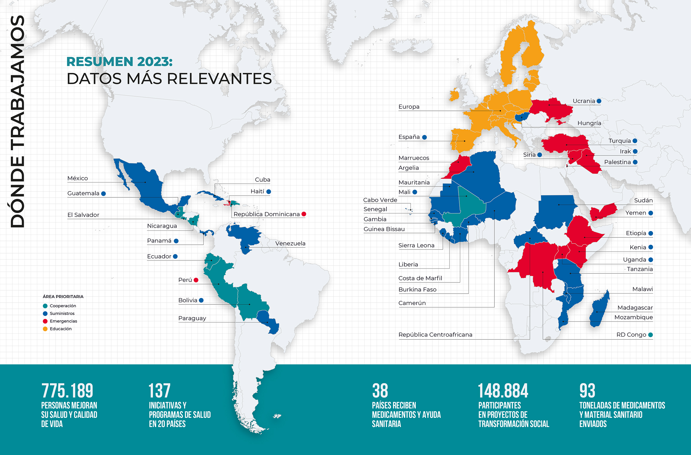 - 137 iniciativas y programas de salud desarrollados en 20 países. 71 de ellas de cooperación al desarrollo y 66 de acción humanitaria.