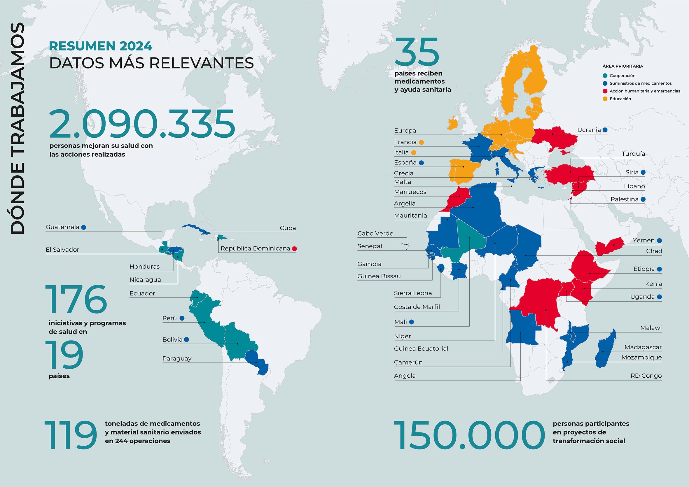 - 244 suministros de medicamentos y material sanitario en 35 países.