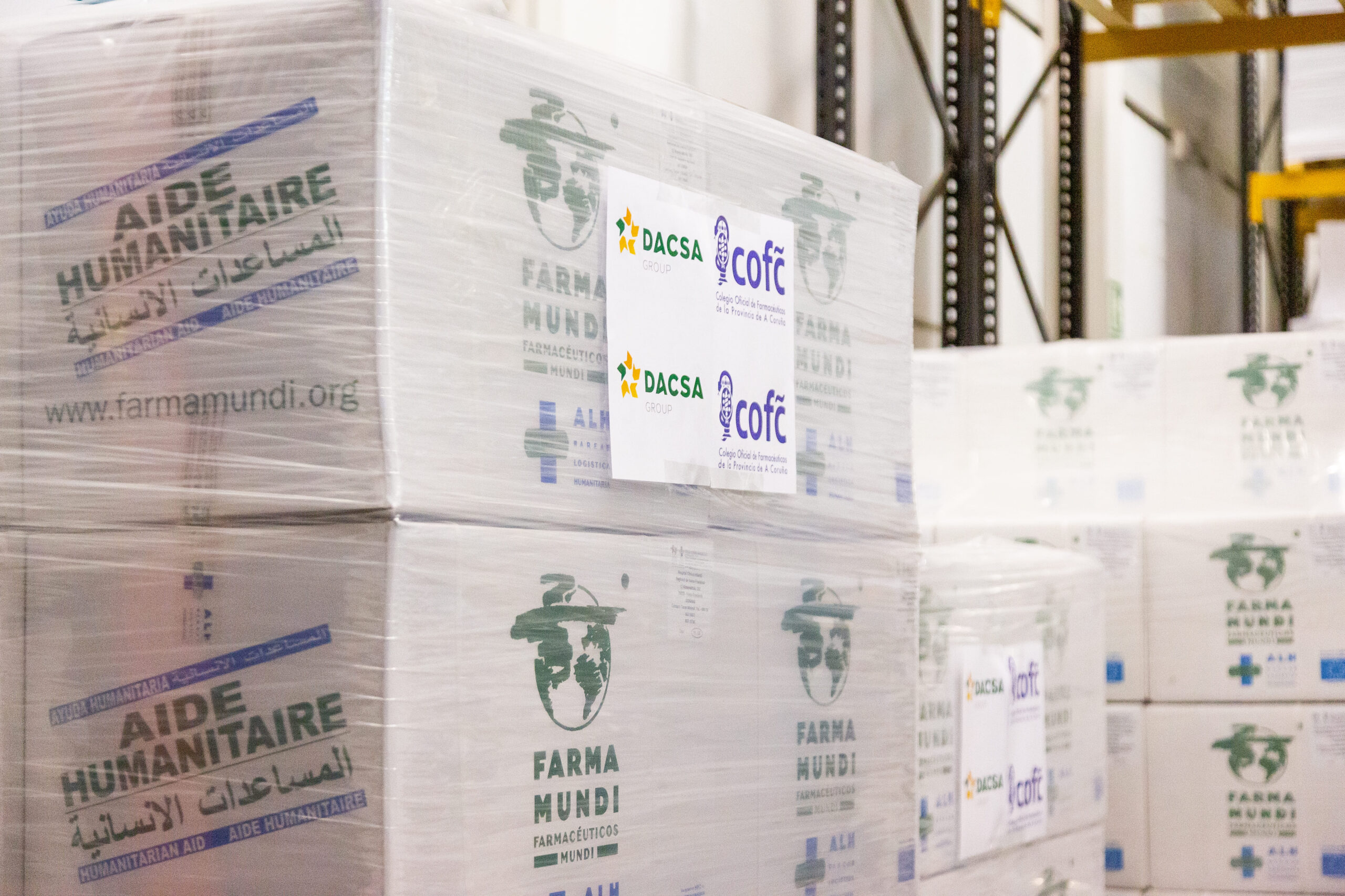Este suministro, con 2.831 kilogramos de medicamentos y material sanitario, se ha gestionado gracias a la donación del Grupo Dacsa, el Colegio Oficial de Farmacéuticos de A Coruña y Farmamundi