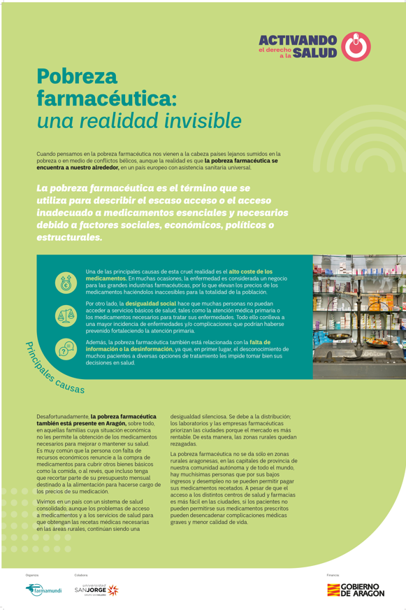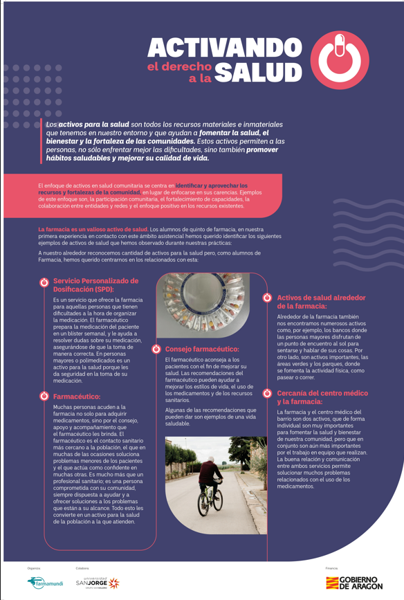 Desde Farmamundi junto con el alumnado del Grado en Farmacia y el Grado en Comunicación Audiovisual de la Universidad San Jorge (USJ) hemos llevado a cabo en Aragón el proyecto ‘Activando el derecho a la salud’ para sensibilizar a la población aragonesa sobre el derecho a la salud y los Objetivos de Desarrollo Sostenible (ODS) en el entorno farmacéutico.