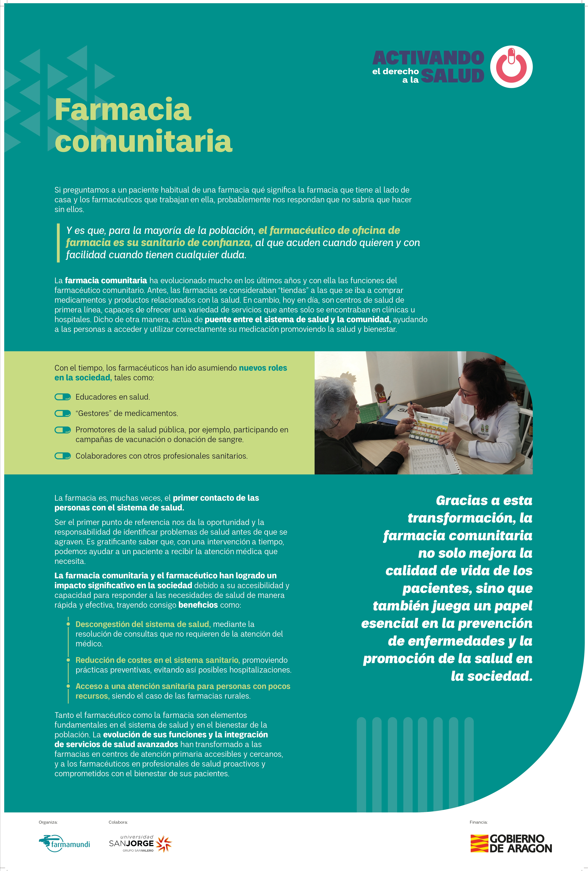 Este proyecto, que ha sido financiado por el Gobierno de Aragón en la convocatoria de ayudas en materia de Cooperación al Desarrollo 2023, ha permitido destacar la farmacia comunitaria como un activo de salud, ya que son un valor añadido para la sociedad y aportan bienestar, cercanía, cuidado y sentimiento de comunidad. Además, contribuyen a un mejor desarrollo de la salud integral de las personas y de los contextos en los que habitan, mejorando su calidad de vida.