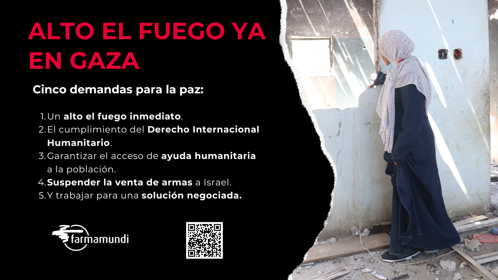 • Exigimos el alto el fuego inmediato y permanente. Demandamos responsabilidades a la comunidad internacional y también al Gobierno español.