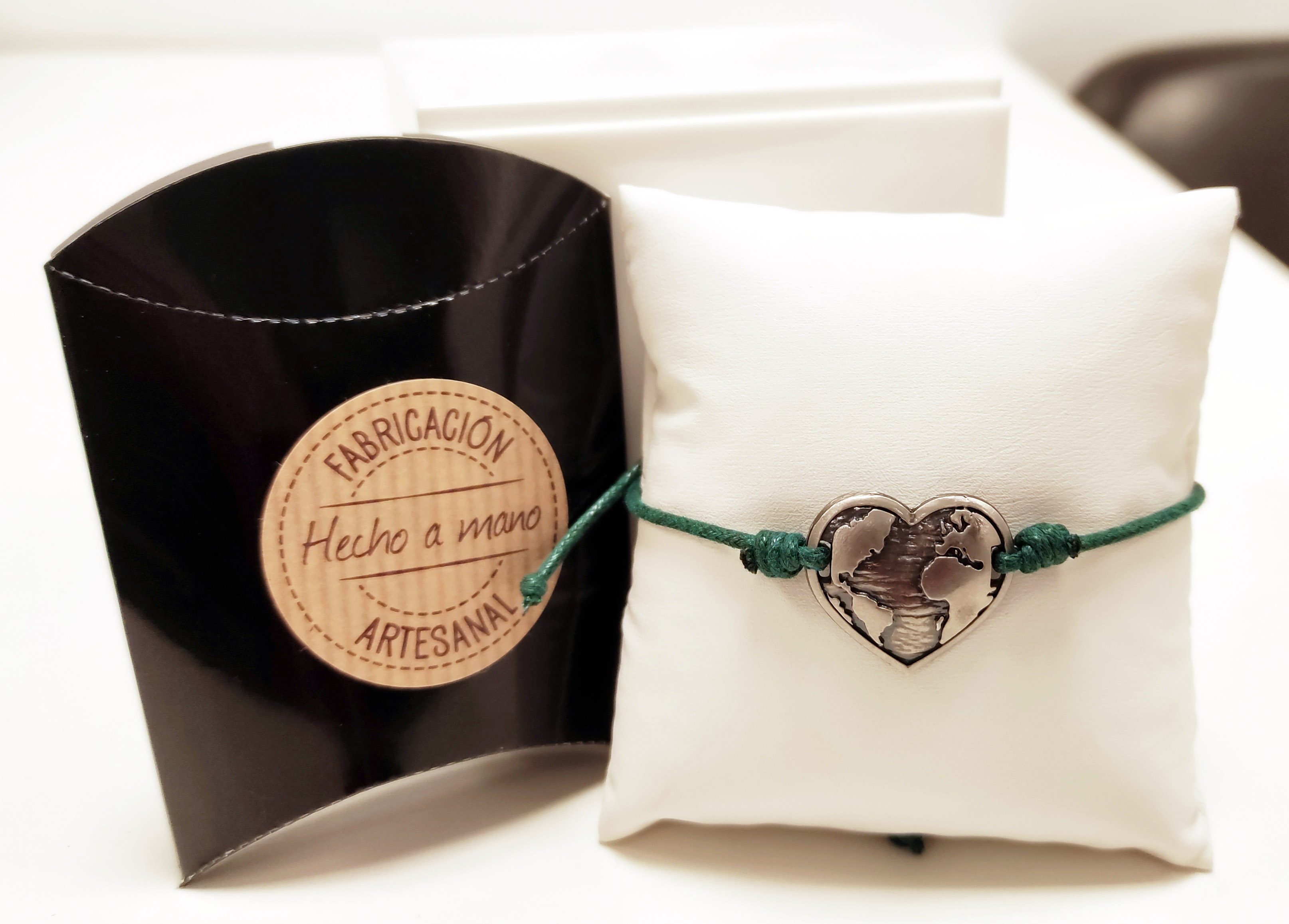 Esta pequeña joya ha sido elaborada en zamak, una aleación de zinc, aluminio, magnesio y cobre. Cuenta con un acabado en plata mate, y está rematada con un sobrio cordón. Su diseño tiene la forma de un mapamundi inserto dentro de un corazón, una figura que debería hacernos reflexionar sobre la necesidad de compartir y de ayudarnos. La persona a la que se la regales sabrá, además, que gracias a esta pulsera se ha colaborado con la salud integral de las regiones más desfavorecidas.